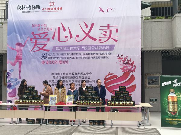 2017年3月31日,由校基金会、马克思学院、学生校友会联合策划实施的哈尔滨工程大学2017年首次“爱心公益日”活动在启航活动中心阳光大厅举行。此次公益日的主题为“格瓦斯助力贫困生爱心义卖”,基金会联络黑龙江知名企业秋林格瓦斯公司提供1000瓶秋林格瓦斯瓶装饮料,以市场价义卖,所得款项将全部用于“爱心大礼包”项目,支持我校贫困生生活物资。